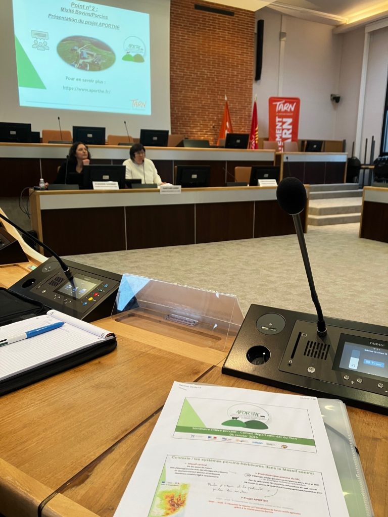 L’Association Porc Montagne et ses membres en région sont donc sollicités pour présenter les principaux résultats du programme, notamment lors de journées destinées à présenter la diversification ou la relance de filière porcine. Ainsi, début janvier 2026, ce fut le cas à Albi lors d’un séminaire de réflexion initié par le Conseil Départemental. En décembre, ce fut lors d’une journée organisée par la Chambre d’Agriculture du Puy-de-Dôme, dans le Livradois. En février et mars, en partenariat avec Midiporc Occitanie, des présentations auront lieu dans les Hautes Pyrénées et dans l’Aveyron.